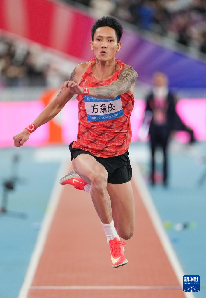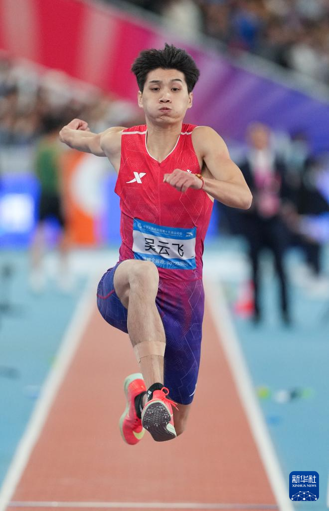 当日,第十五届全国运动会田径项目男子三级跳远决赛在广州举行。