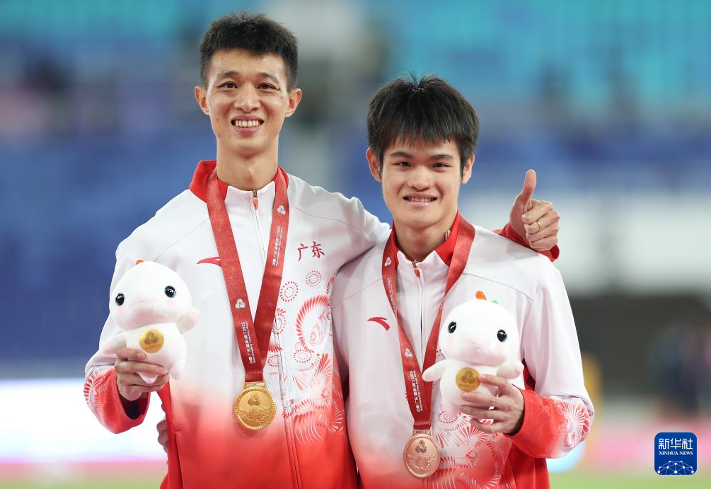 11月20日,获得冠军的广东队选手吴瑞庭(左)与获得季军的队友周荣嘉在颁奖仪式上合影。