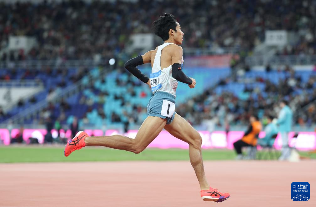11月20日,广西队选手刘德助(右一)在比赛中冲刺。他夺得冠军。