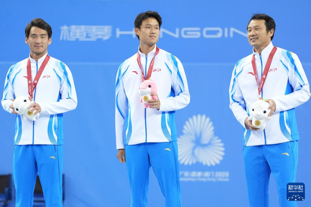 当日,第十五届全国运动会网球男子双打颁奖仪式在广东横琴举行。