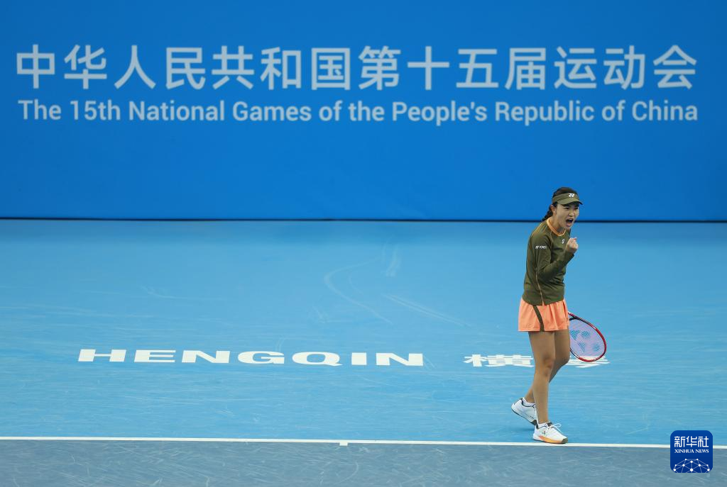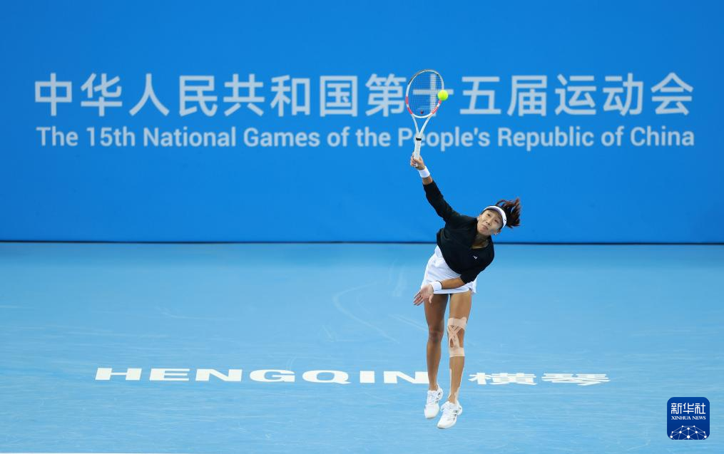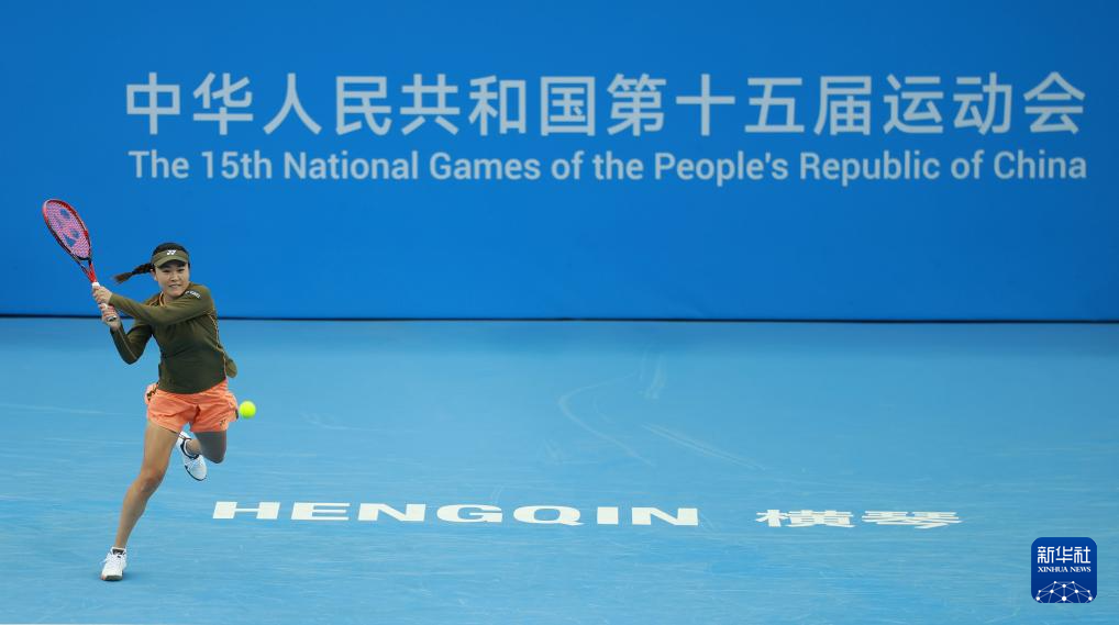 当日,在广东横琴举行的第十五届全国运动会网球项目女子单打决赛中,安徽队选手朱琳对阵北京队选手高馨妤。