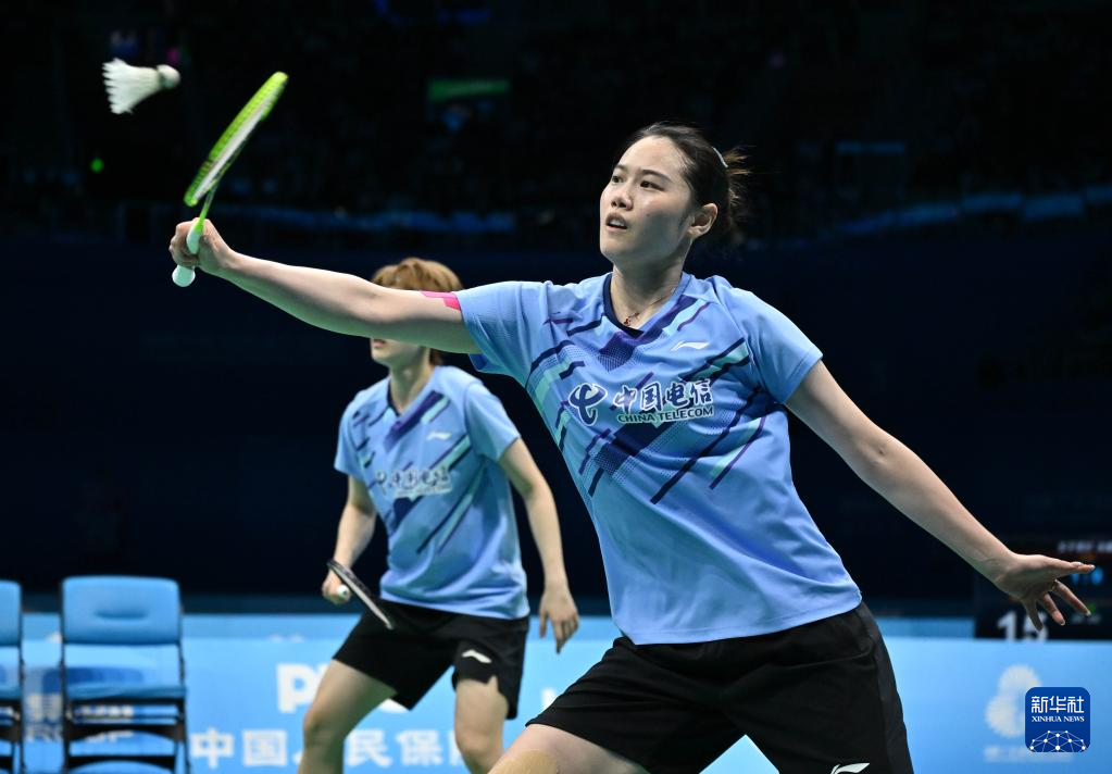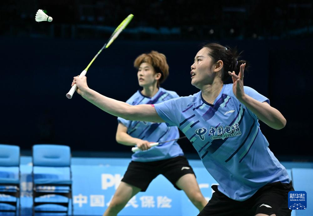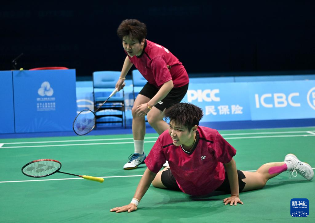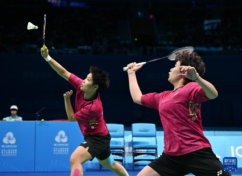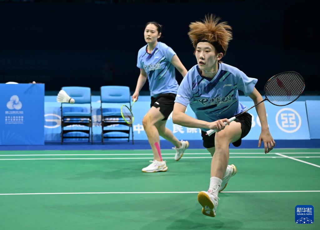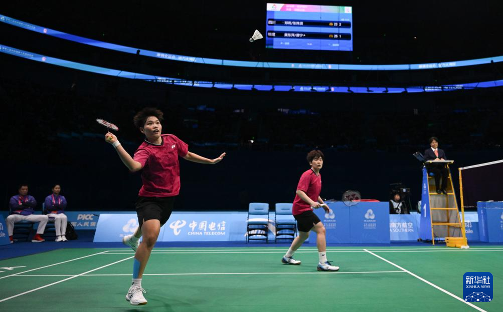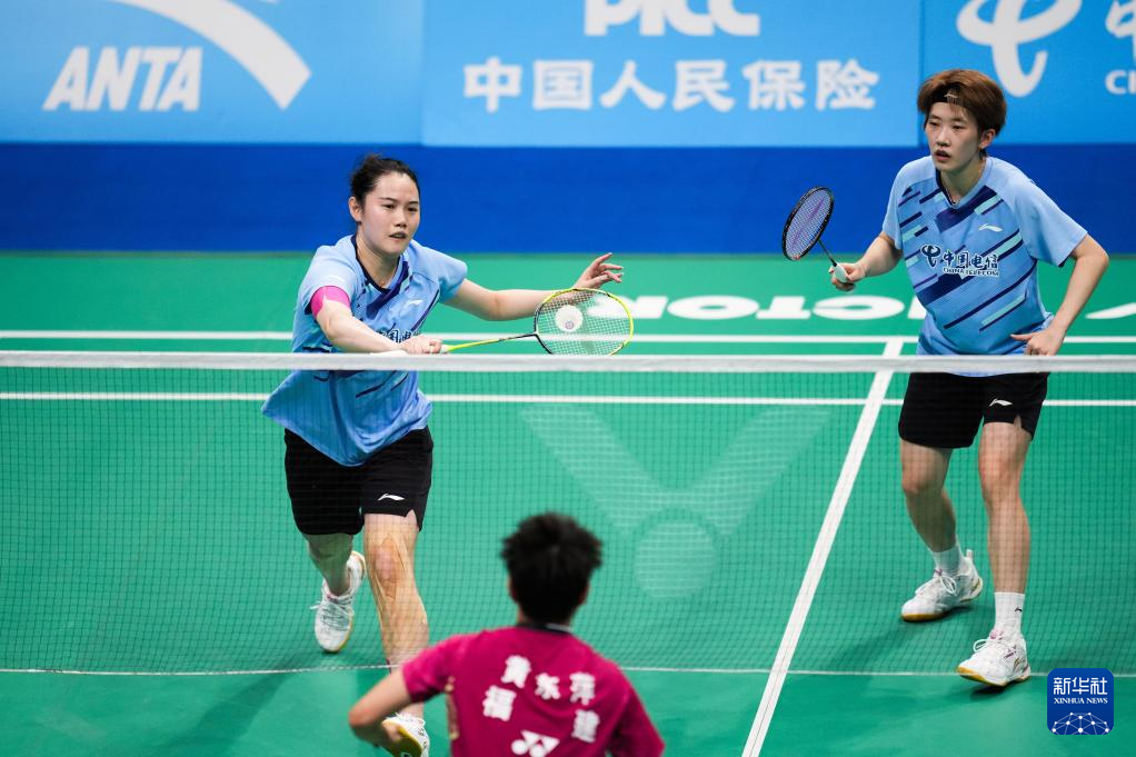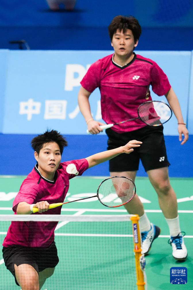 11月20日,四川队组合郑雨(左)/张殊贤在比赛中。
