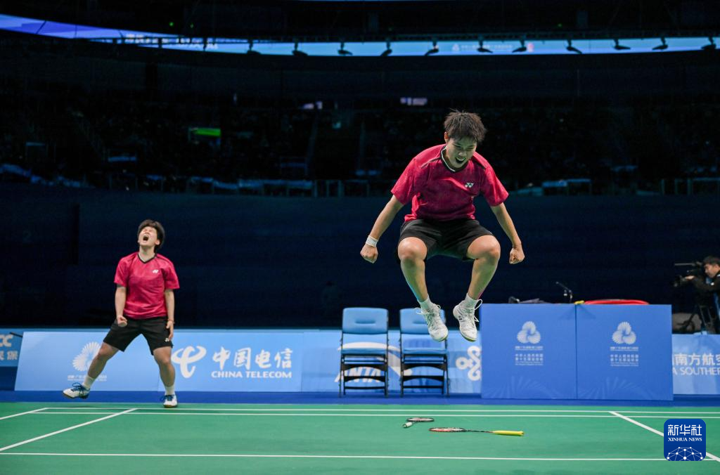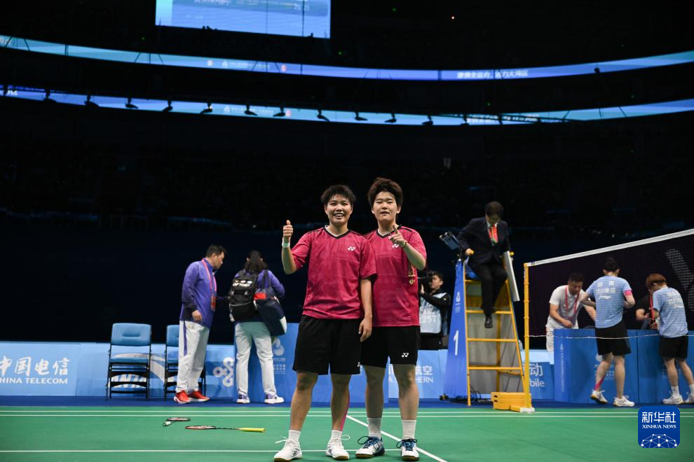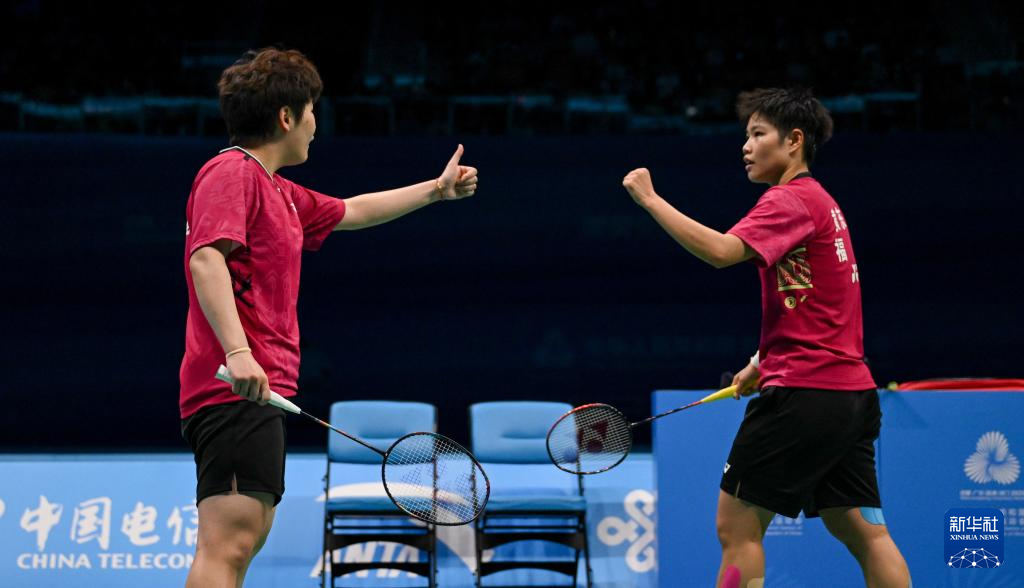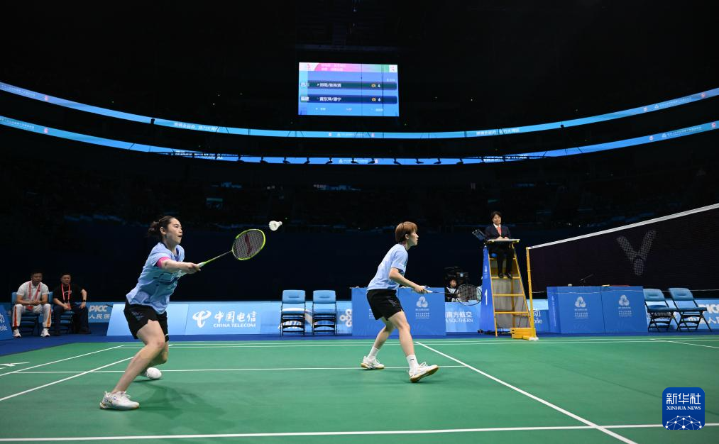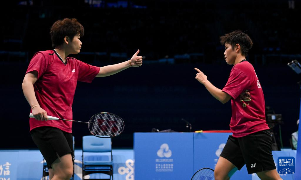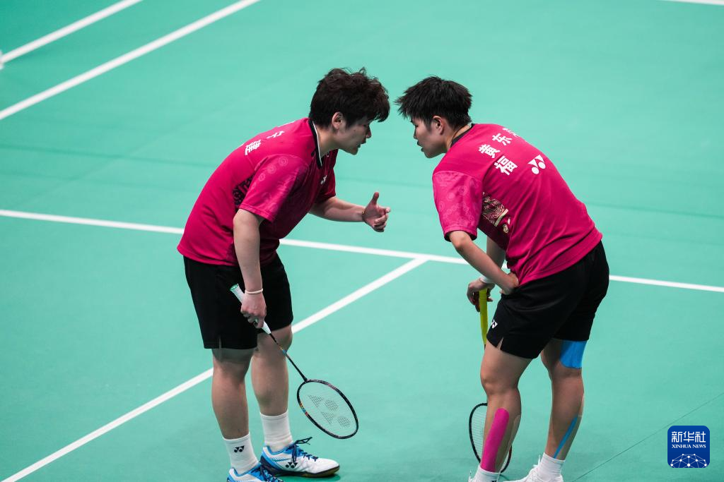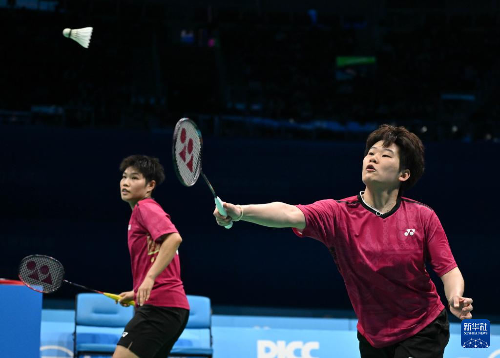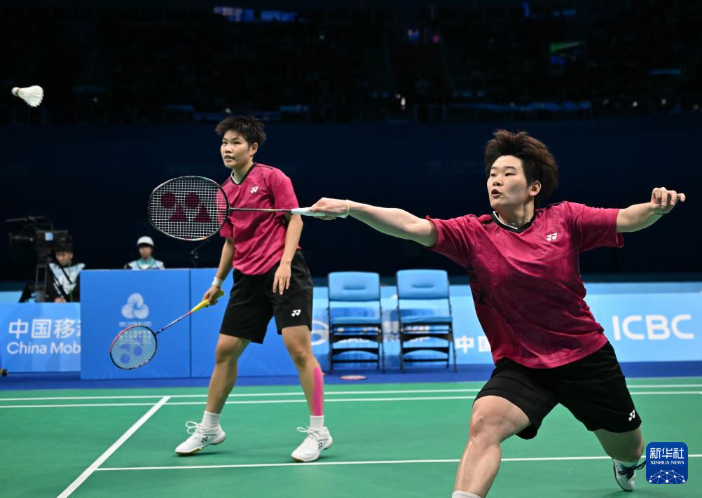 11月20日,四川队组合郑雨(左)/张殊贤在比赛中。