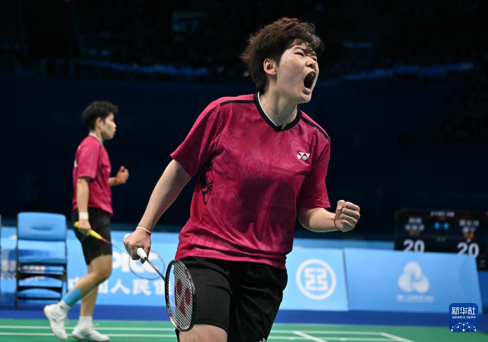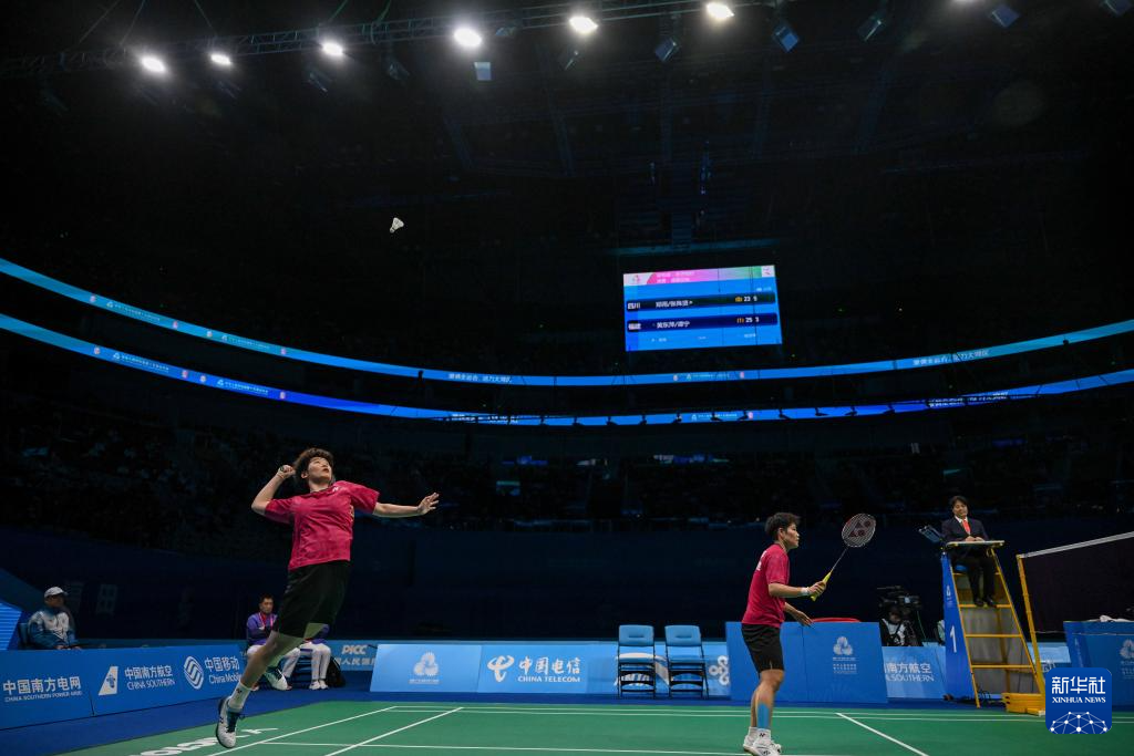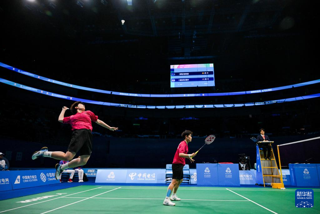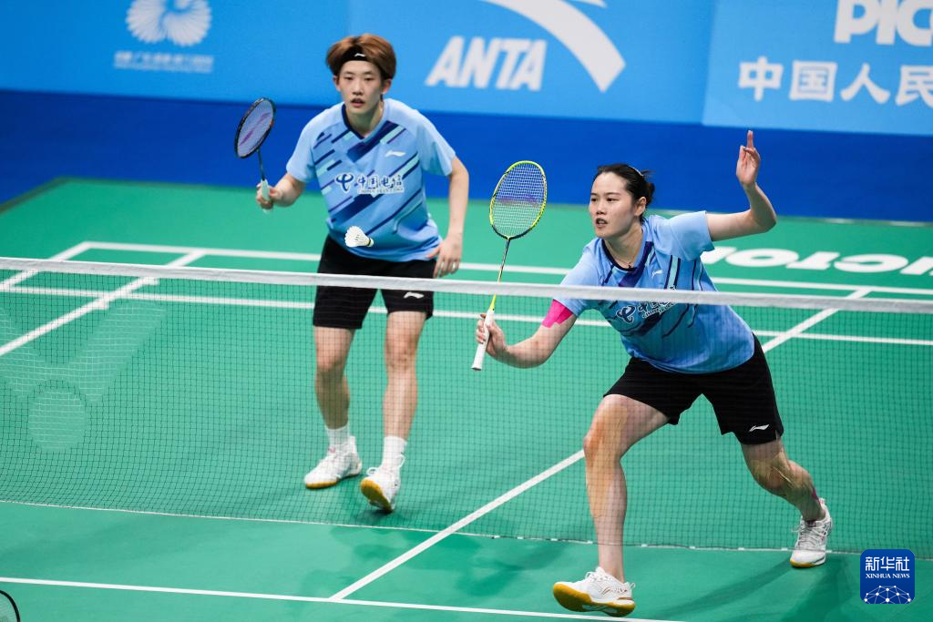 11月20日,四川队组合郑雨/张殊贤(右)在比赛中。