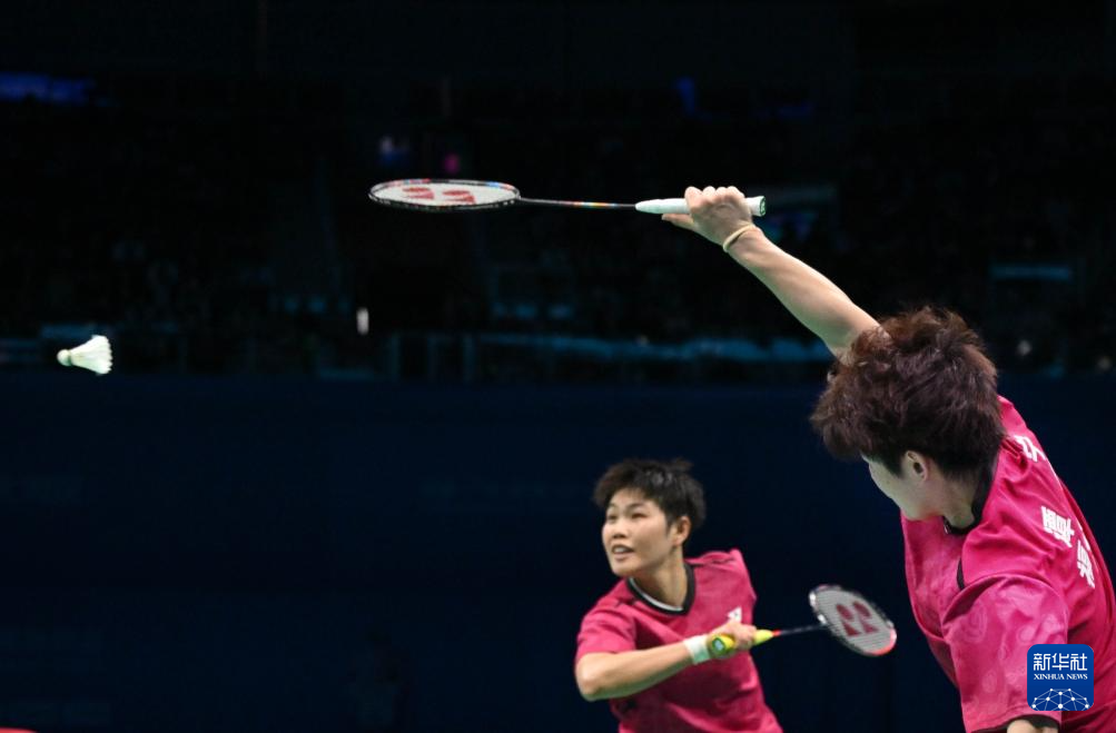 11月20日,福建队组合黄东萍(左)/谭宁在比赛中。