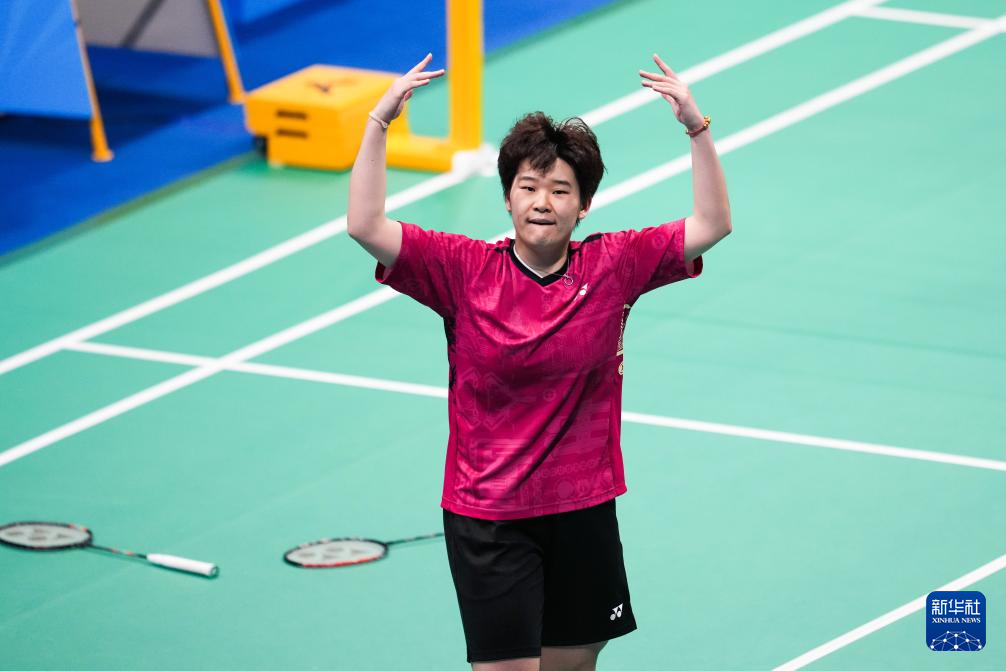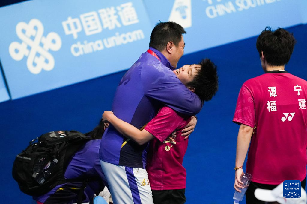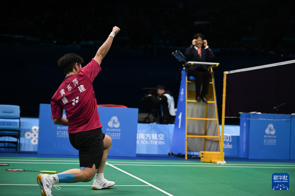 11月20日,福建队选手谭宁庆祝赢得比赛。