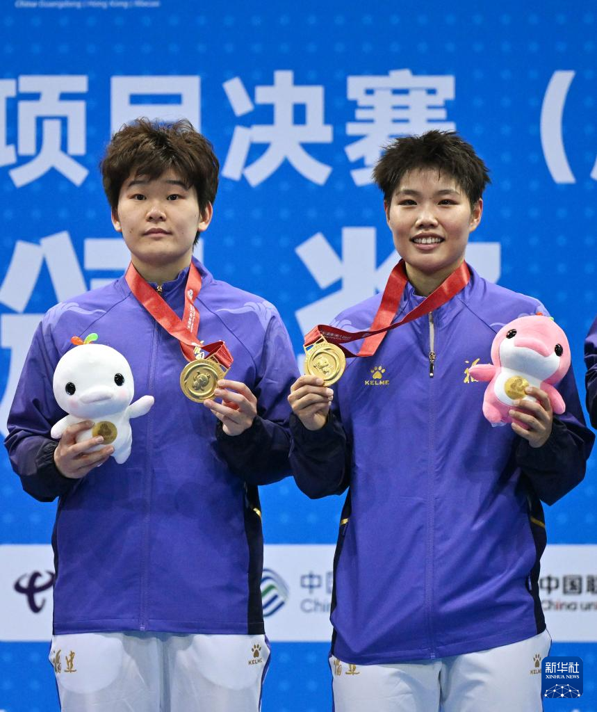 11月20日,冠军福建队组合黄东萍/谭宁(左)在颁奖仪式上。