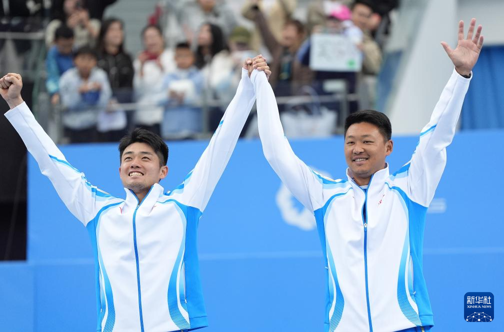 11月20日,浙江队选手吴易昺(右)在比赛后庆祝夺冠。
