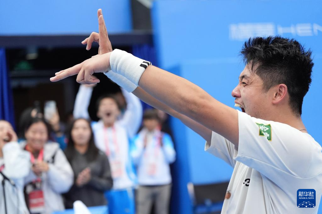11月20日,浙江队选手吴易昺在庆祝获胜。