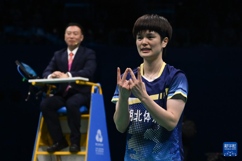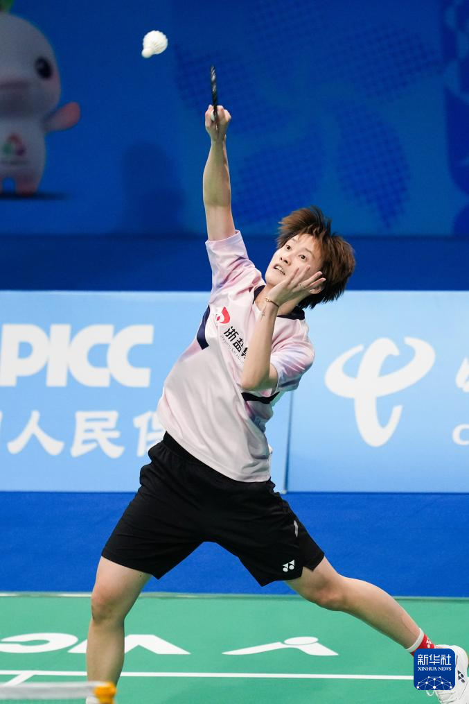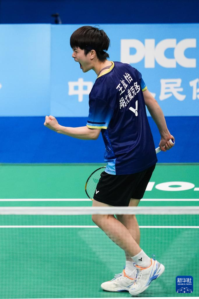 当日,在广东深圳举行的第十五届全国运动会羽毛球女子单打决赛中,湖北队选手王祉怡2比1战胜浙江队选手陈雨菲,获得冠军。