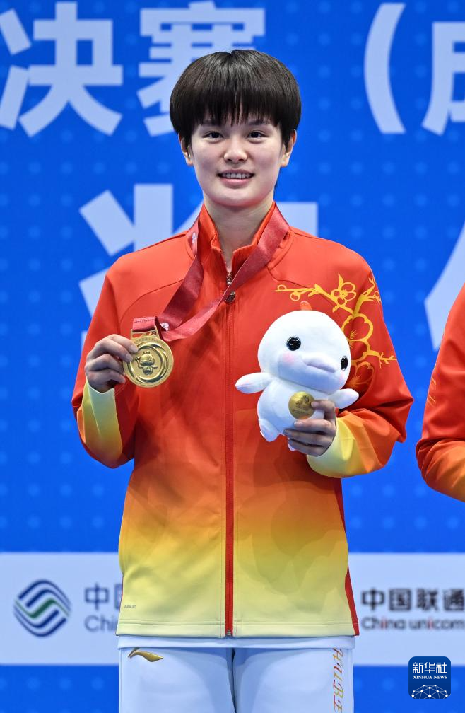 11月20日,冠军湖北队选手王祉怡在颁奖仪式上。