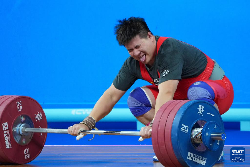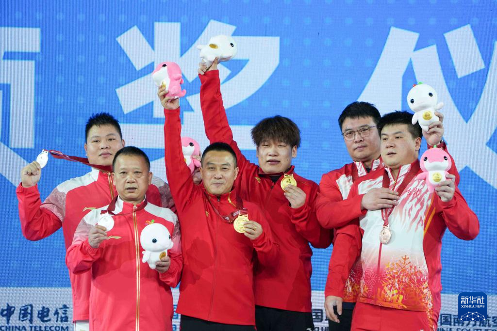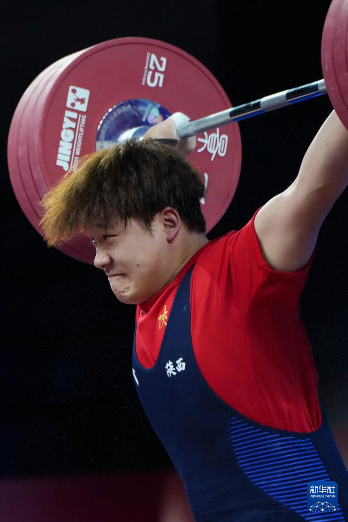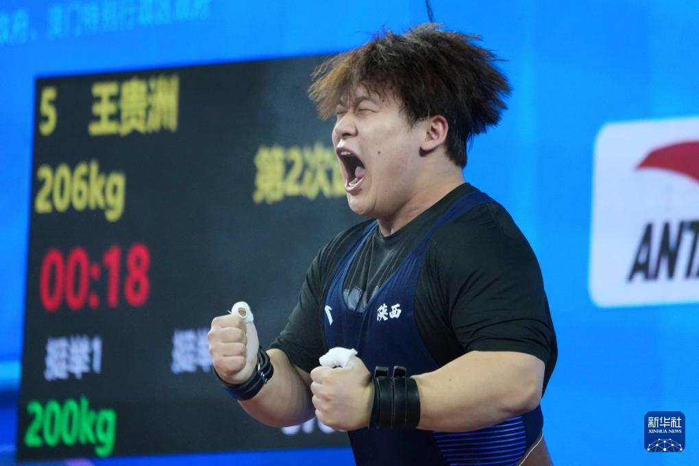 11月20日,陕西队选手王贵洲在抓举比赛中。最终,他获得冠军。