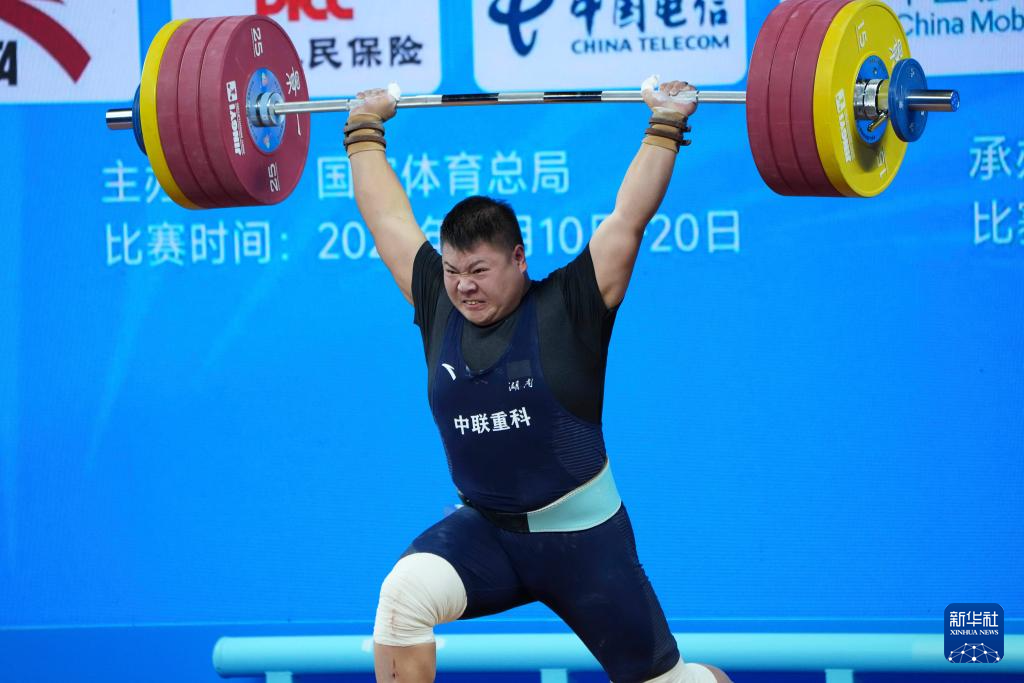 11月20日,湖南队选手石禅龙在抓举比赛中。最终,他获得亚军。