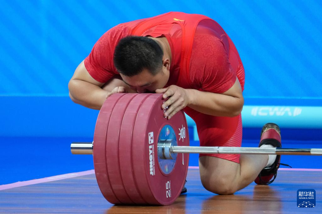 11月20日,山东队选手杨哲在挺举比赛中亲吻杠铃。最终,他位列第五名。