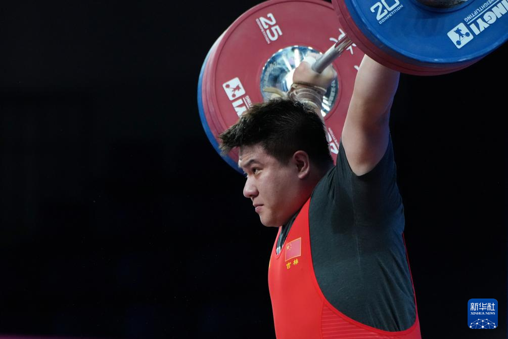 11月20日,吉林队选手任相霖在挺举比赛中。最终,他获得季军。
