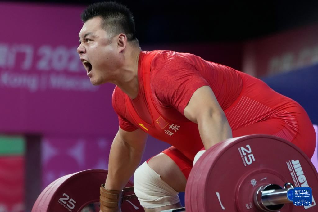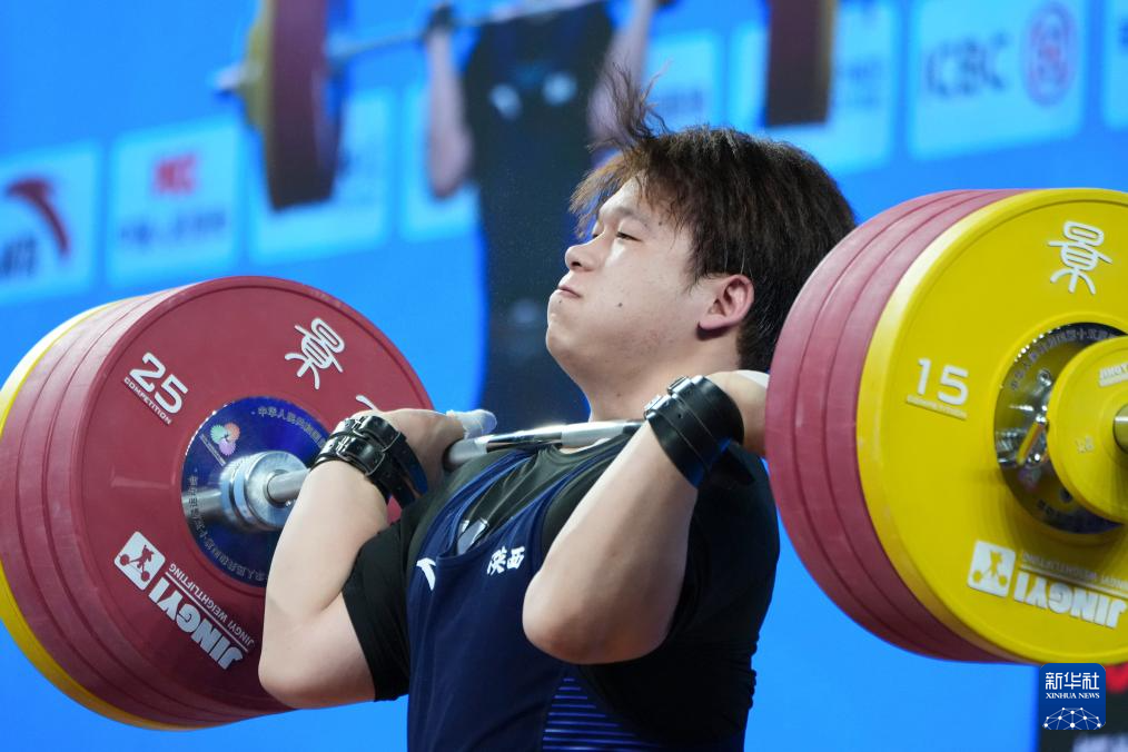 11月20日,陕西队选手王贵洲在挺举比赛中。最终,他获得冠军。