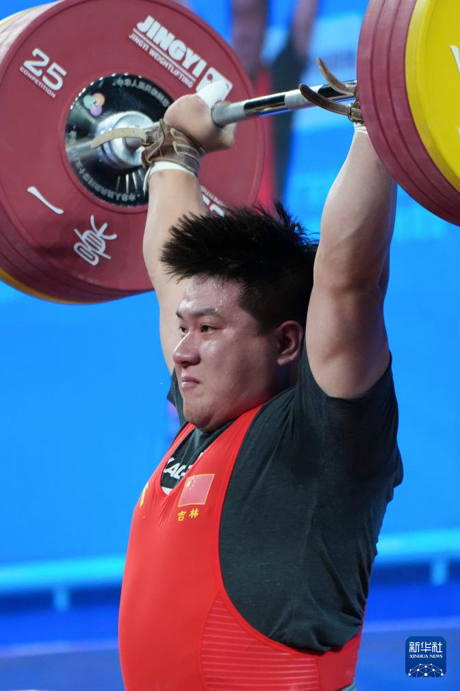 11月20日,吉林队选手任相霖在抓举比赛中。最终,他获得季军。