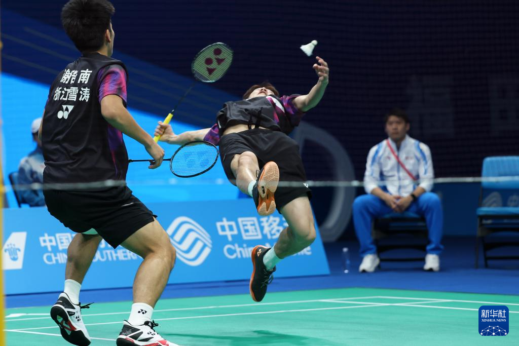 11月20日,浙江队组合王昶(右)/谢浩南在比赛中。