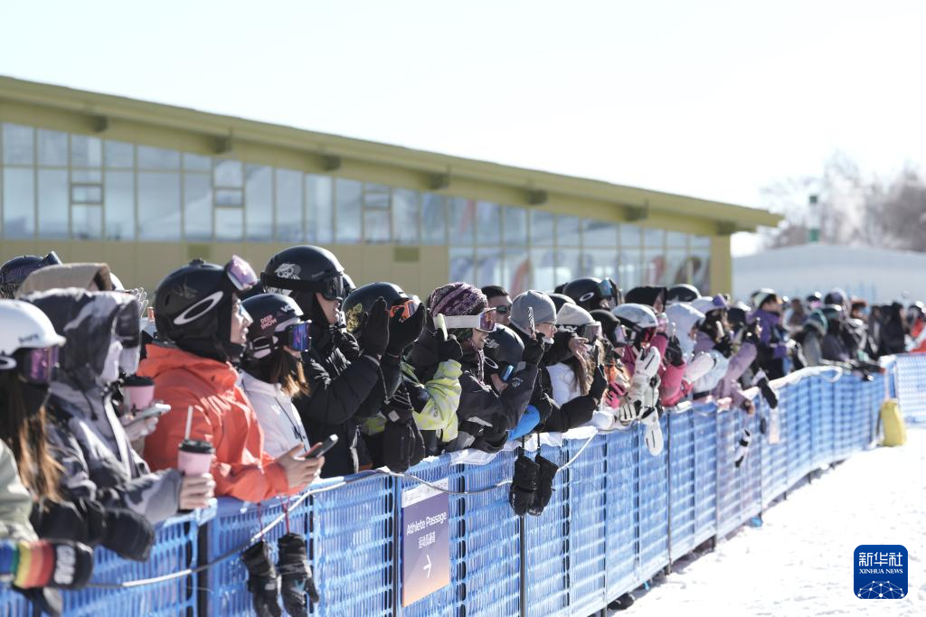 11月27日,中国选手葛春宇在单板滑雪男子大跳台资格赛中庆祝晋级。