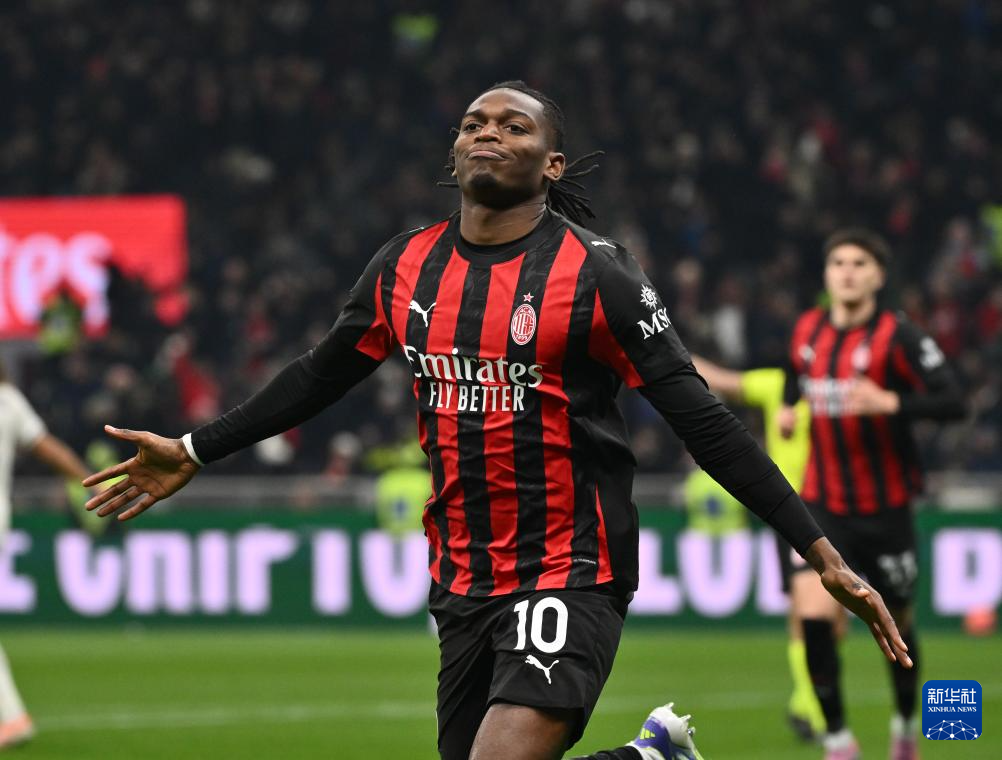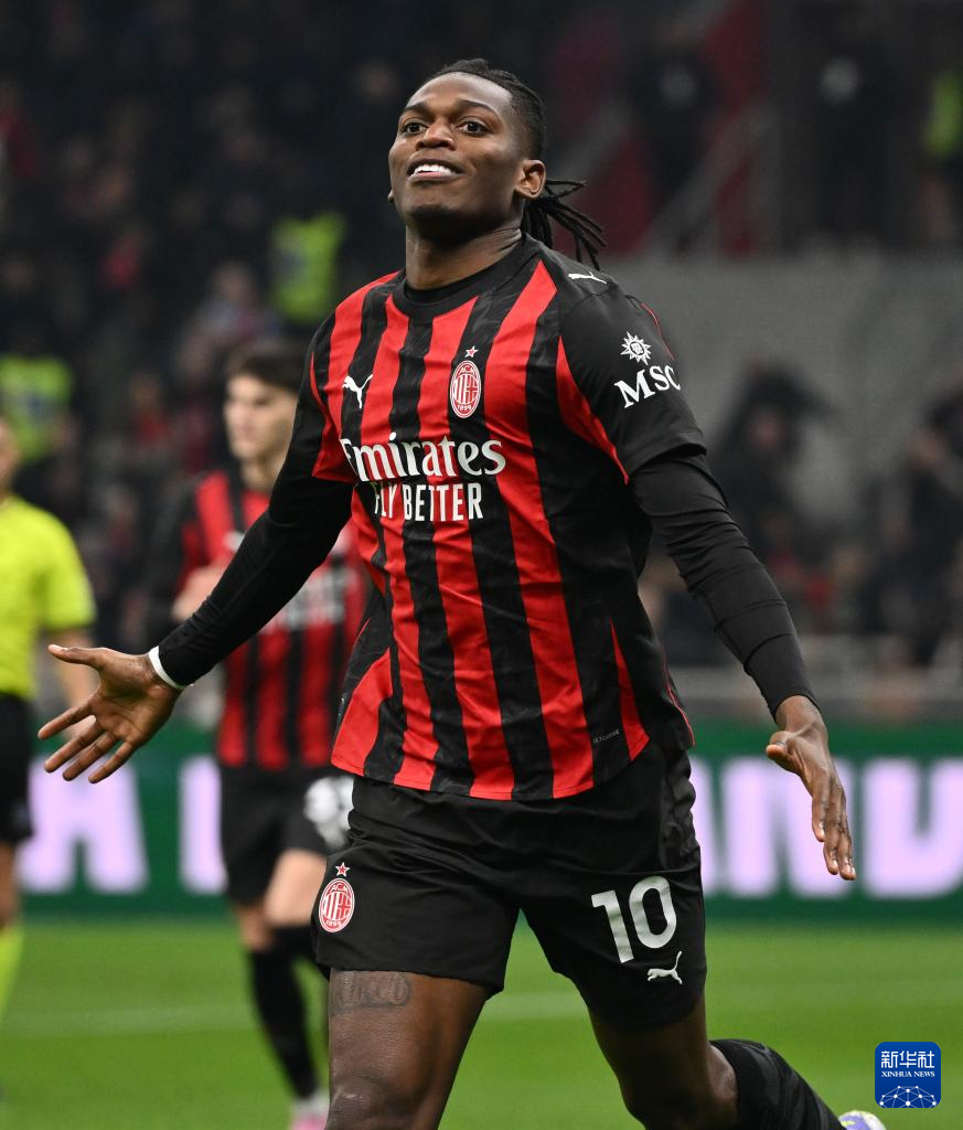 11月29日,AC米兰队球员莱奥在比赛中庆祝进球。