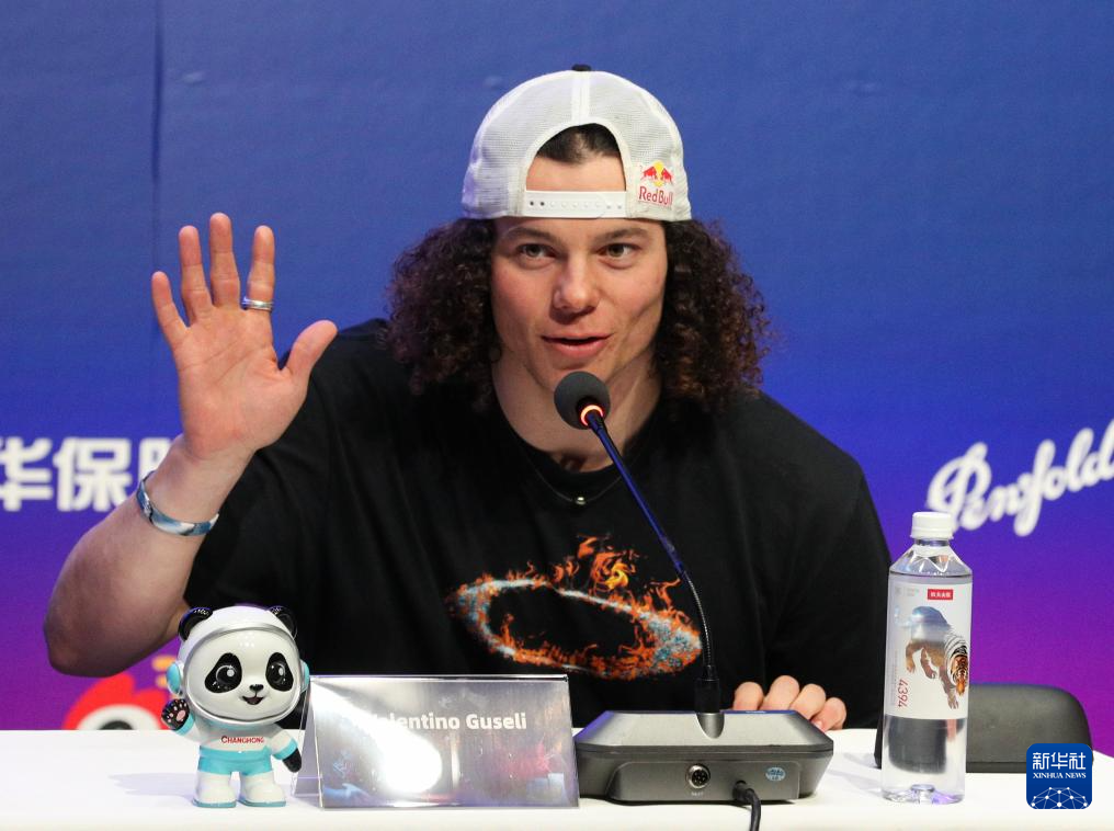 12月2日,澳大利亚单板滑雪运动员瓦伦蒂诺·古塞利在见面会现场。