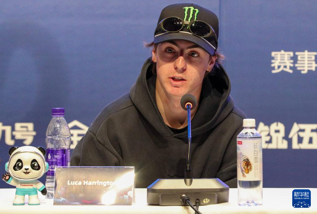 12月2日,新西兰自由式滑雪运动员卢卡·哈灵顿在见面会现场。