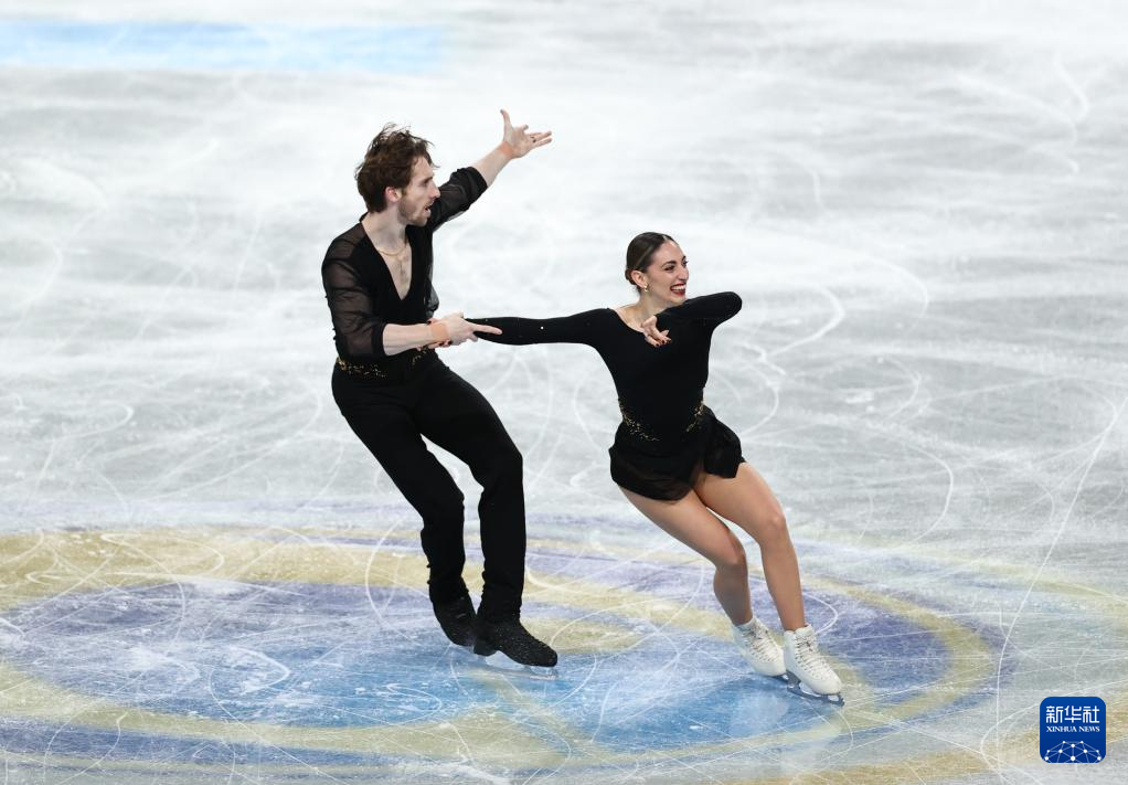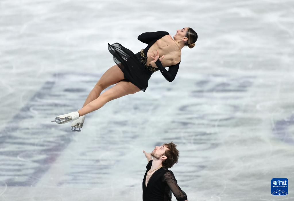 12月4日,意大利组合孔蒂(右)/马西在双人滑短节目比赛中。他们以77.22分的成绩暂列第二。