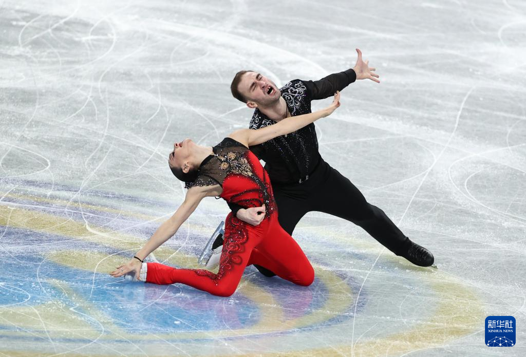 12月4日,格鲁吉亚组合梅特尔基娜(左)/别鲁拉瓦在双人滑短节目比赛中。他们以75.04分的成绩暂列第三。