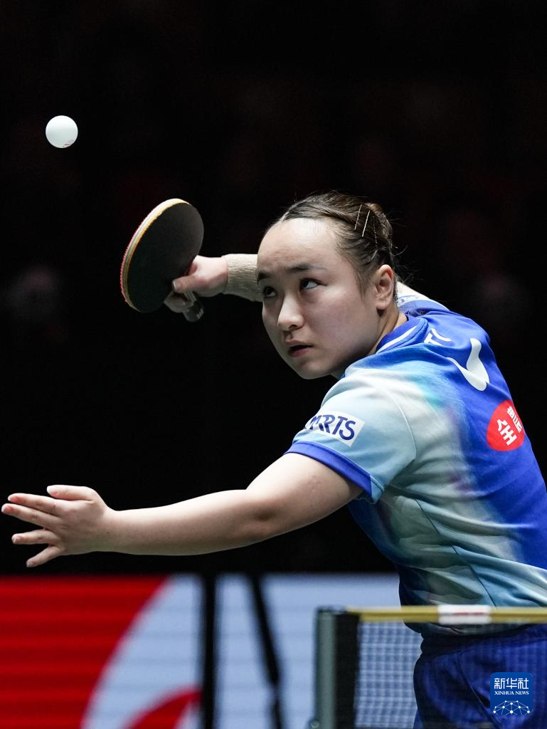 12月6日,中国队选手王曼昱在比赛中回球。最终,她在女单比赛中2比1战胜日本队选手伊藤美诚。