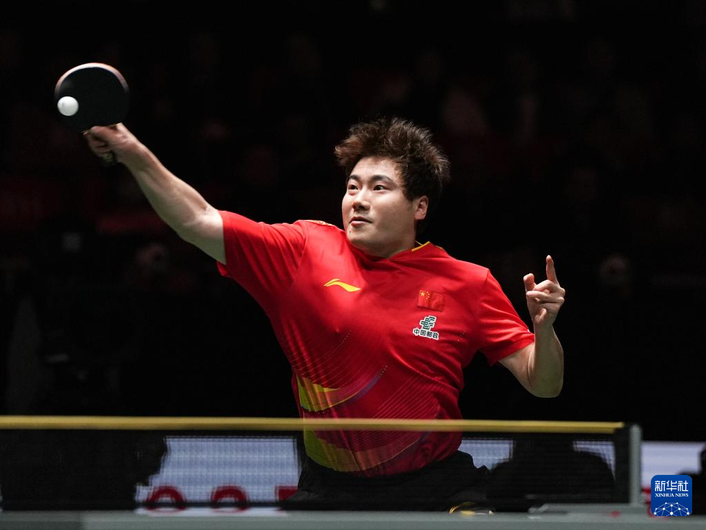 12月6日,中国队选手梁靖崑在比赛中回球。最终,他在男单比赛中1比2不敌日本队选手松岛辉空。
