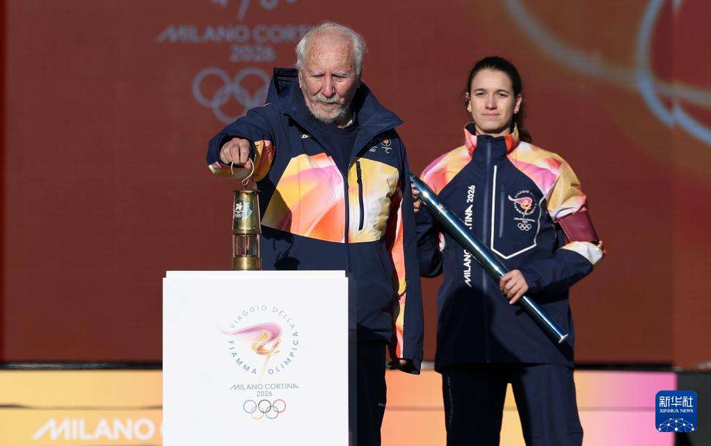 12月6日,米兰冬奥会组委会主席乔瓦尼·马拉戈在火炬传递前点燃火种盆。