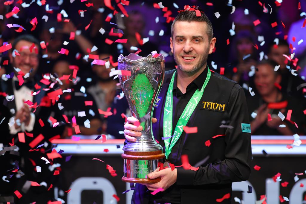 12月7日,塞尔比在2025年斯诺克英国锦标赛颁奖仪式上。新华社发(翟政摄)