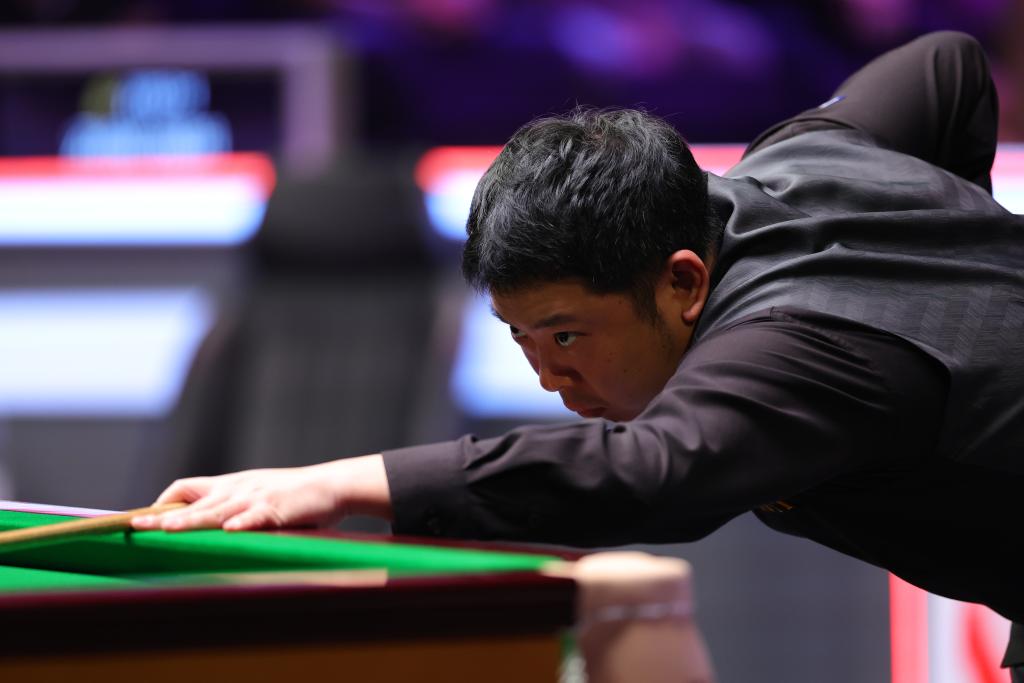 12月1日,张安达在斯诺克英国锦标赛首轮比赛中。新华社发(翟政摄)