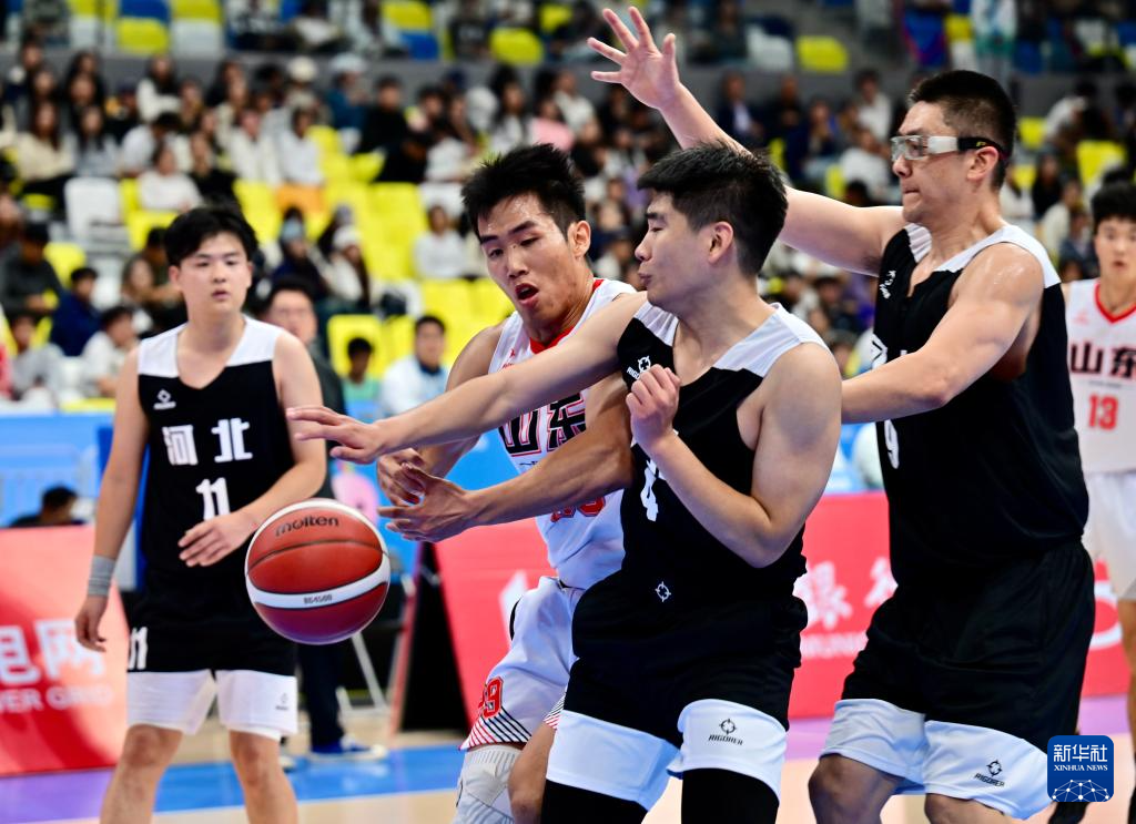12月9日,山东队球员张凯睿(左二)和河北队球员张博凯(左三)在比赛中拼抢。