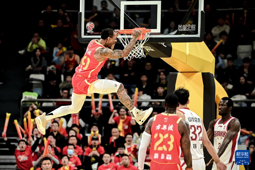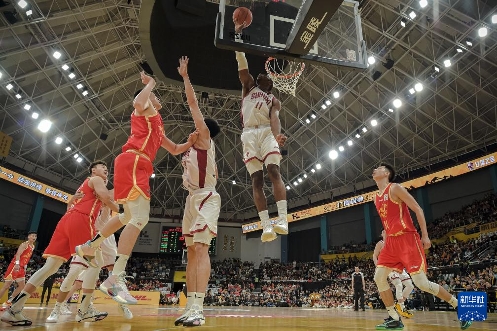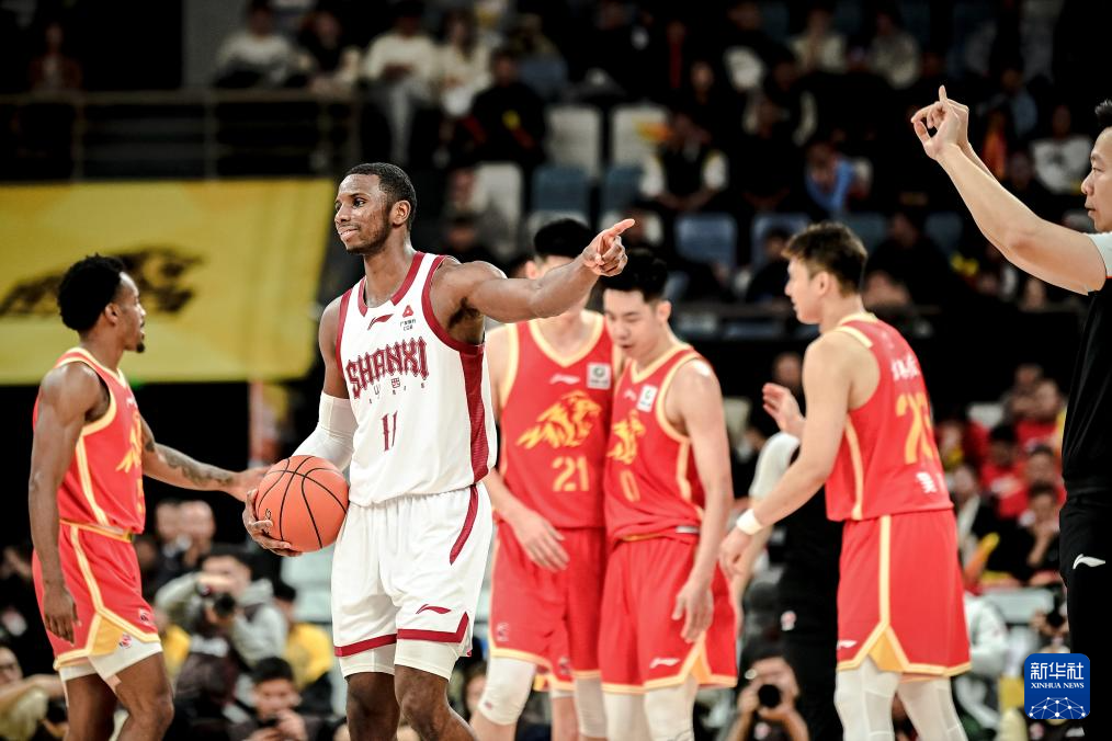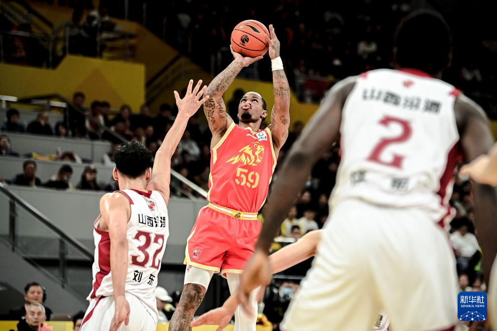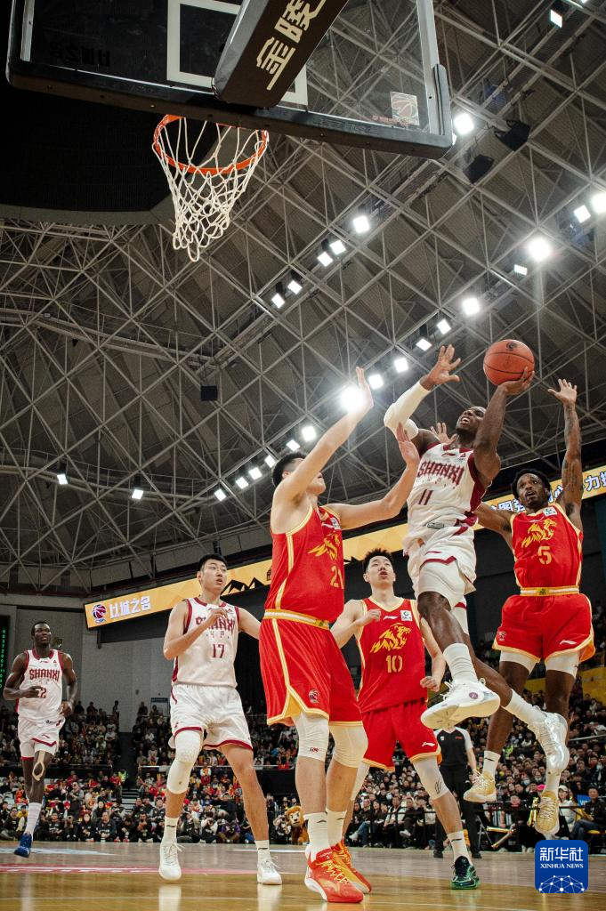 12月12日,山西汾酒队球员迪亚洛(右二)在比赛中进攻。