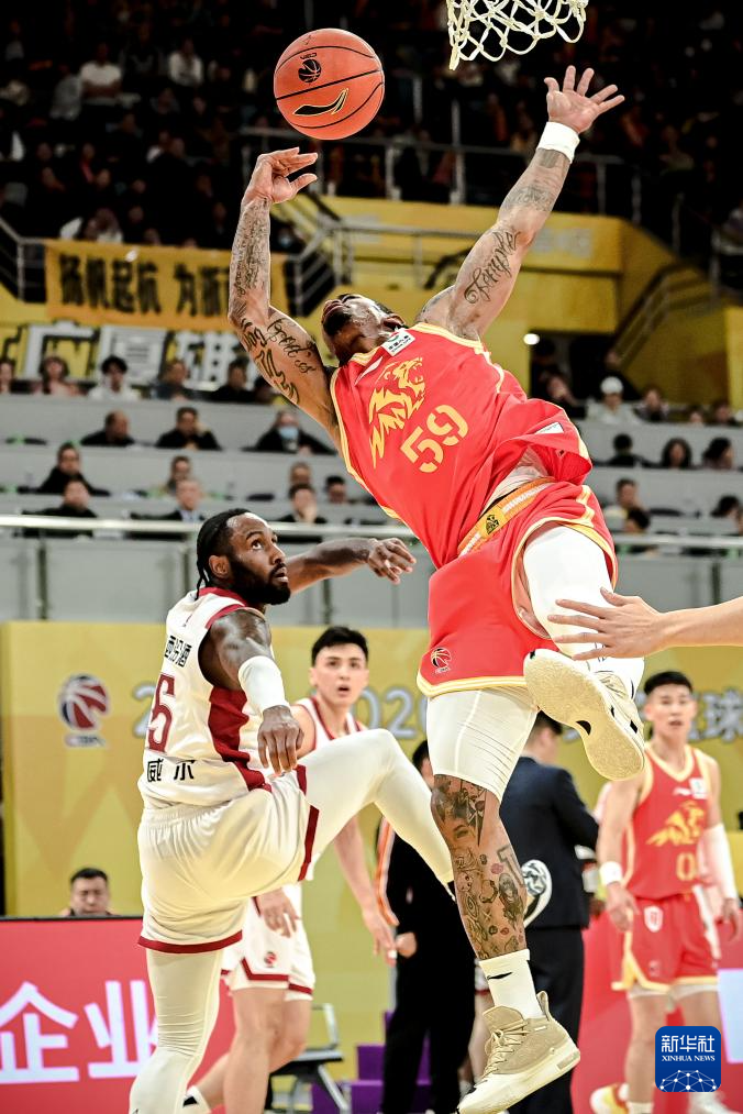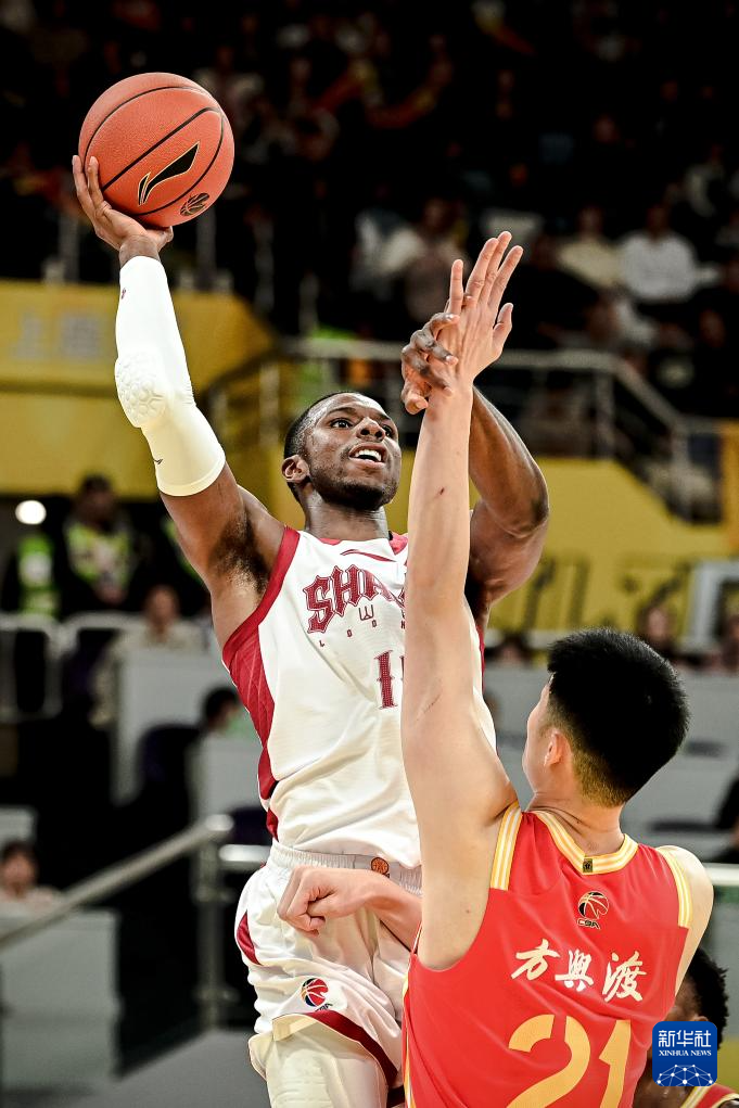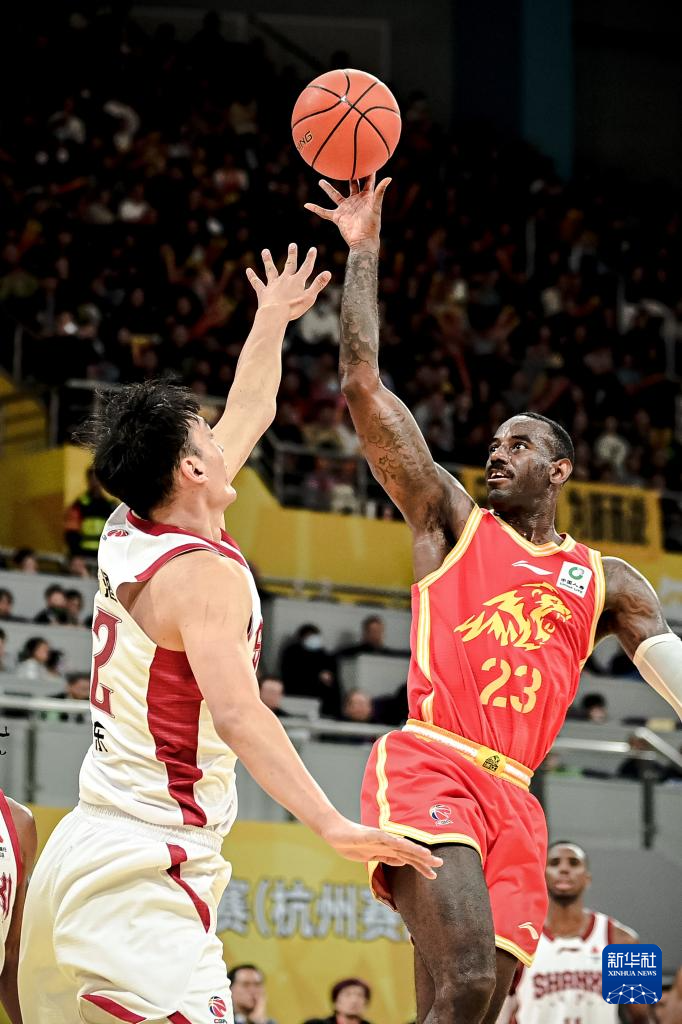 12月12日,山西汾酒队球员迪亚洛(左)在比赛中投篮。