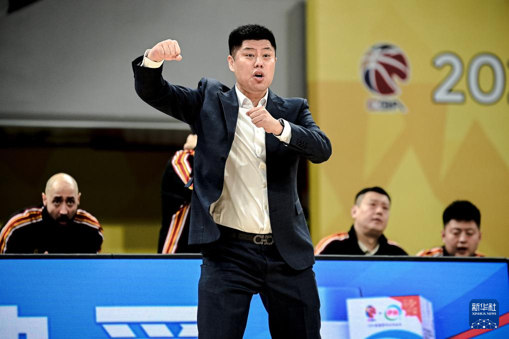 12月12日,山西汾酒队主教练潘江在比赛中指挥。