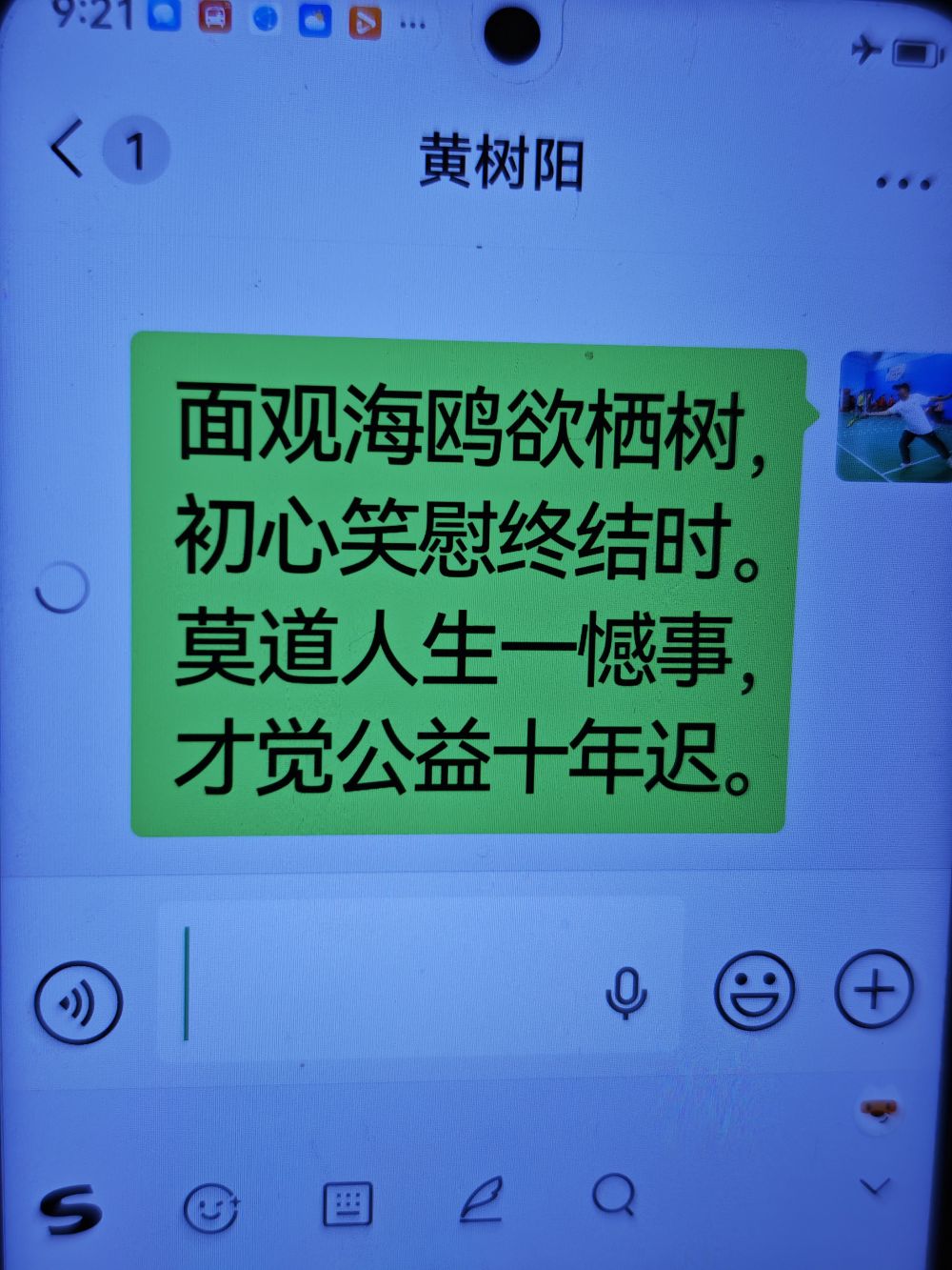 这是黄树阳发来的自作诗