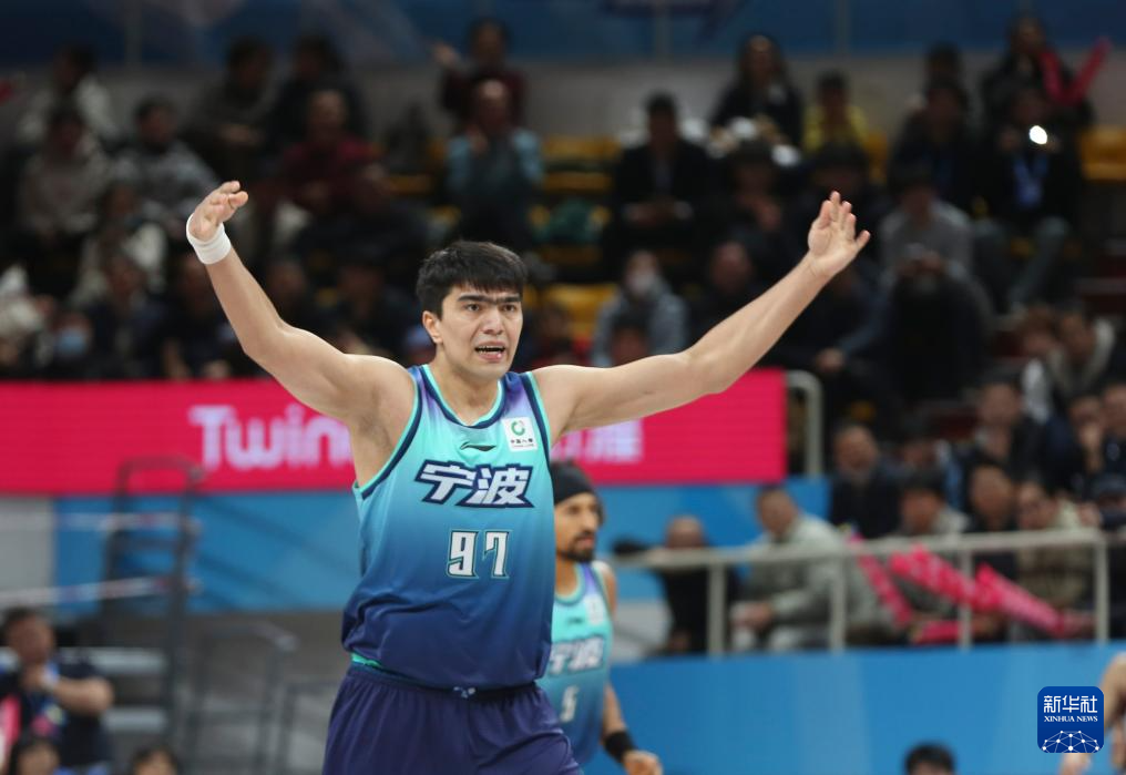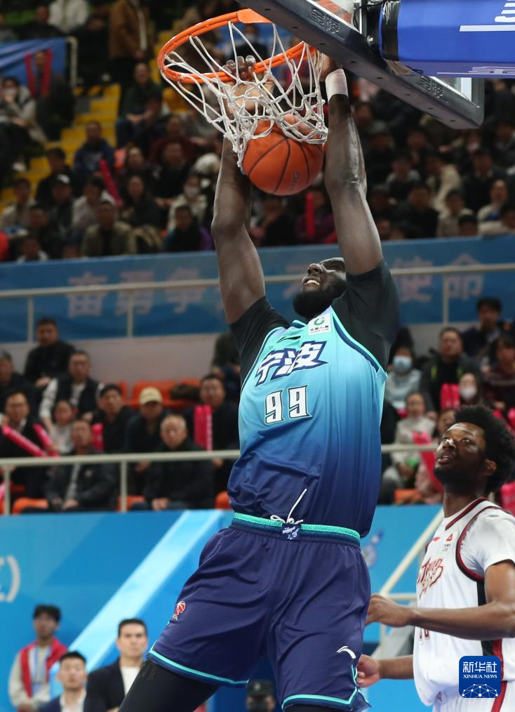 12月26日,宁波町渥队球员鲁吐布拉在比赛中庆祝得分。