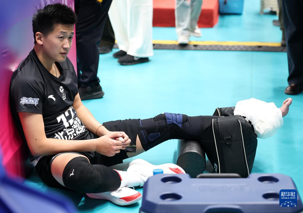12月28日,比赛中脚部受伤的北京北汽队球员刘泽在比赛后。