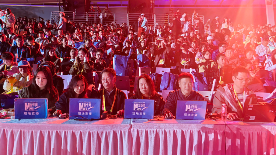 新华网直播团队在中华人民共和国第十五届运动会闭幕式现场做好网络直播准备