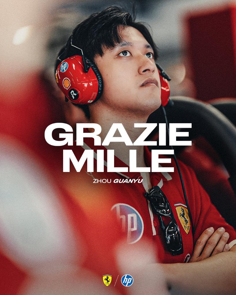 “期约已至,感恩‘宇’你相伴。感谢周冠宇过去一个赛季作为储备车手的努力与付出。祝福小周未来的赛车生涯一切顺利。”法拉利在车队的中文社交媒体上表示。