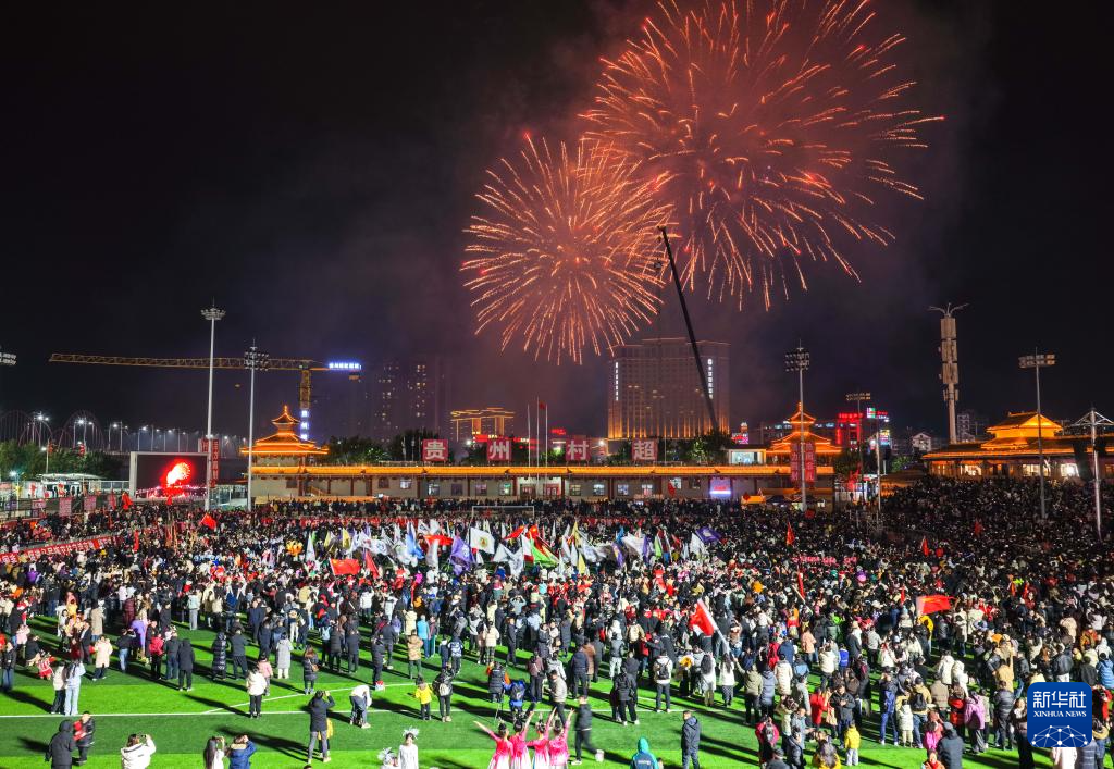 1月2日,人们在开幕式活动现场一起跳民族舞蹈“多耶”。