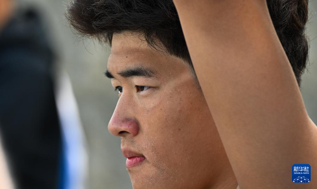 1月5日,潘展乐在训练前热身。