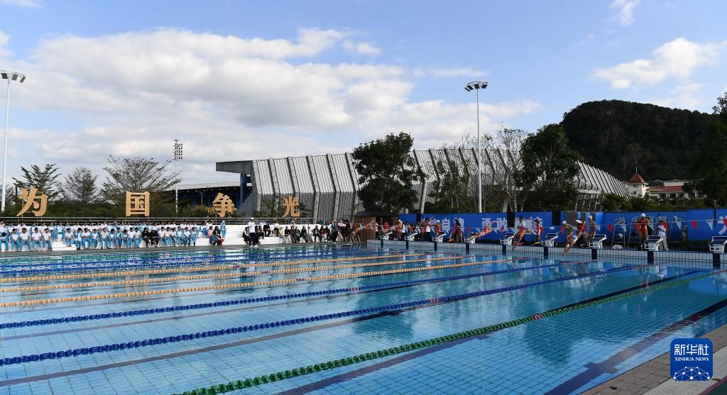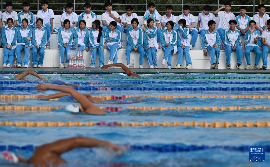 1月5日,海南中学白沙学校学生在观摩国家游泳队训练。