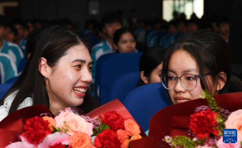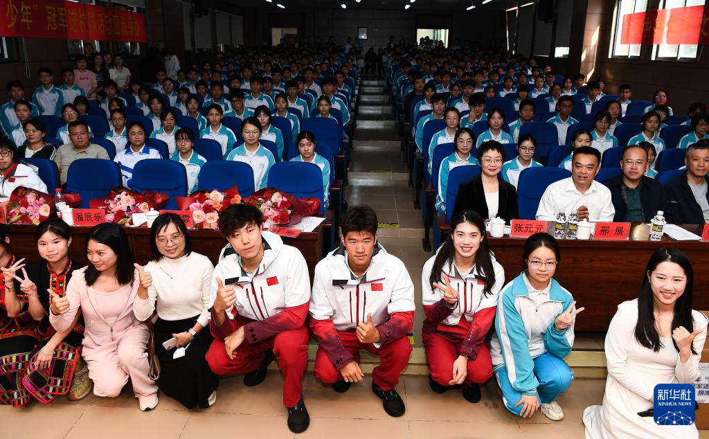 当日,以“泳往直前,共筑梦想”为主题的游泳奥运冠军进校园活动在海南省白沙黎族自治县举行。奥运冠军张雨霏、覃海洋、潘展乐来到海南中学白沙学校,与师生进行互动交流、分享经验。