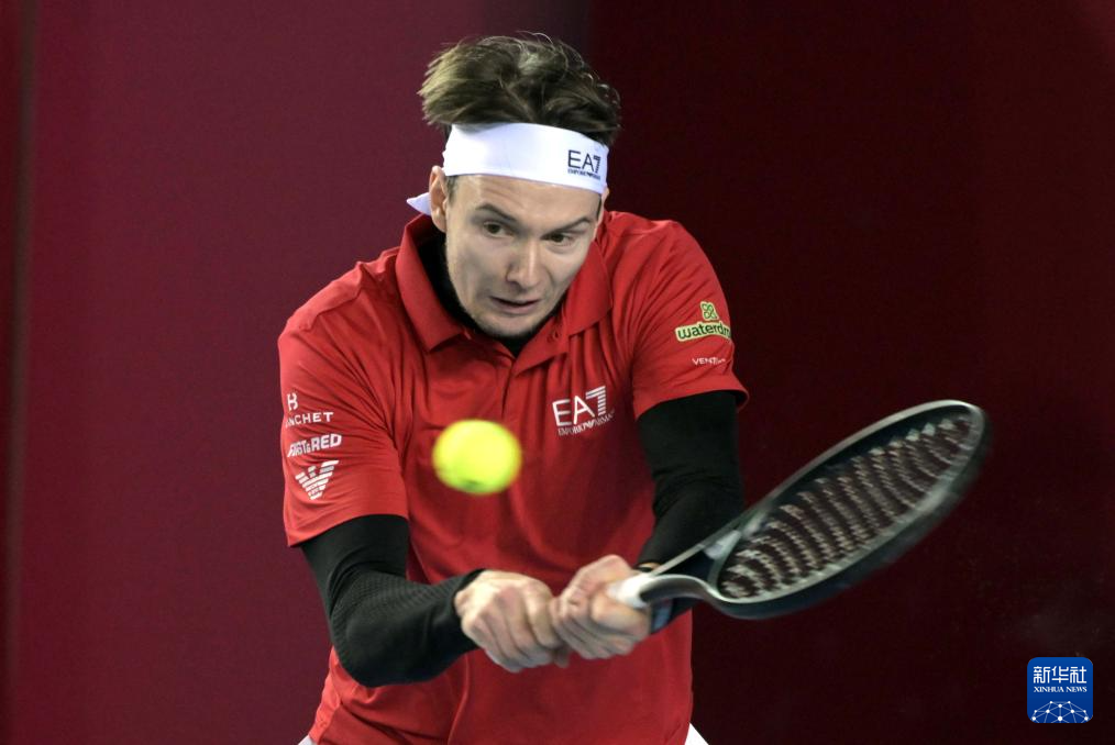 1月9日,哈萨克斯坦选手亚历山大·布勃利克在比赛中回球。