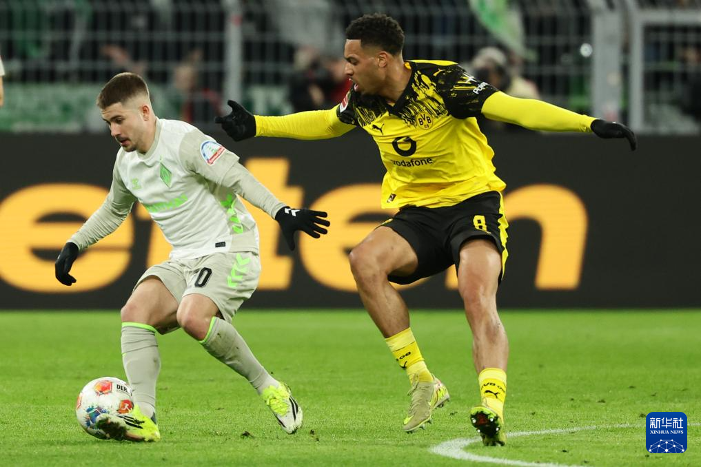 1月13日,多特蒙德队球员席尔瓦(左)与云达不来梅队球员弗里德尔在比赛中拼抢。