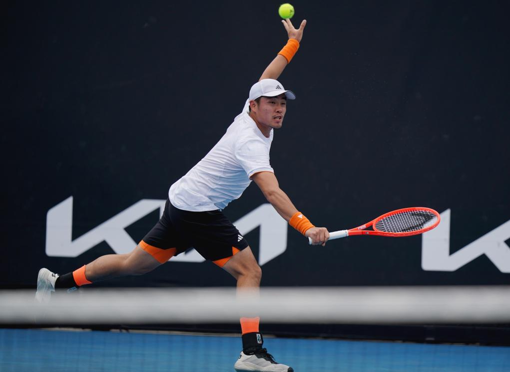 1月15日,吴易昺在比赛中回球。当日,在澳大利亚墨尔本进行的2026年澳大利亚网球公开赛男子单打资格赛决胜轮中,中国选手吴易昺2:0战胜美国选手博耶,晋级正赛。新华社发(王申摄)
