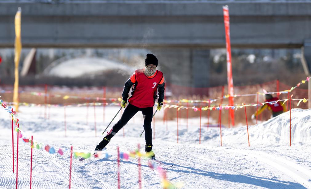 1月17日,陈春洋在呼伦贝尔海拉尔举办的第二届全国城市越野滑雪挑战赛中。新华社记者 连振 摄